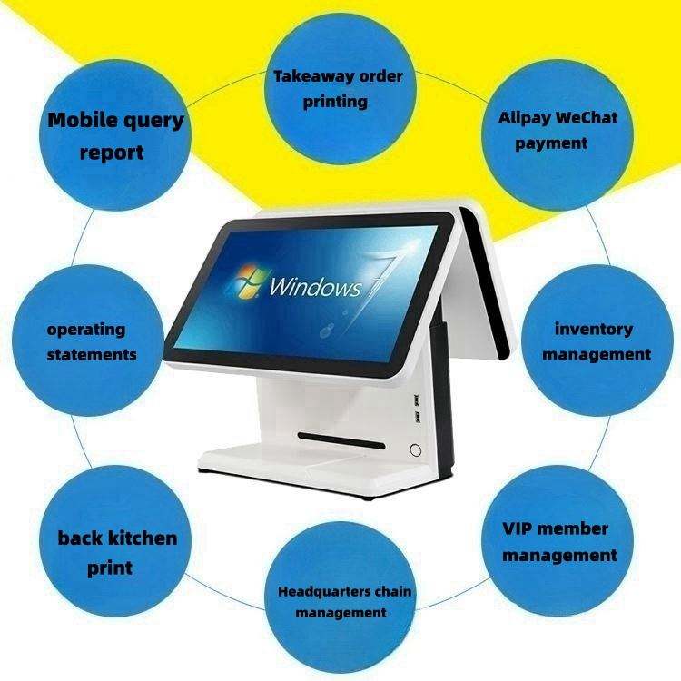 ระบบ POS ลงทะเบียนเงินสด11.6นิ้ว + 15นิ้วเครื่องอ่าน QR หน้าจอคู่เครื่องพิมพ์58มม. POS ร้านอาหารซูเปอร์มาร์เก็ตร้านกาแฟ POS