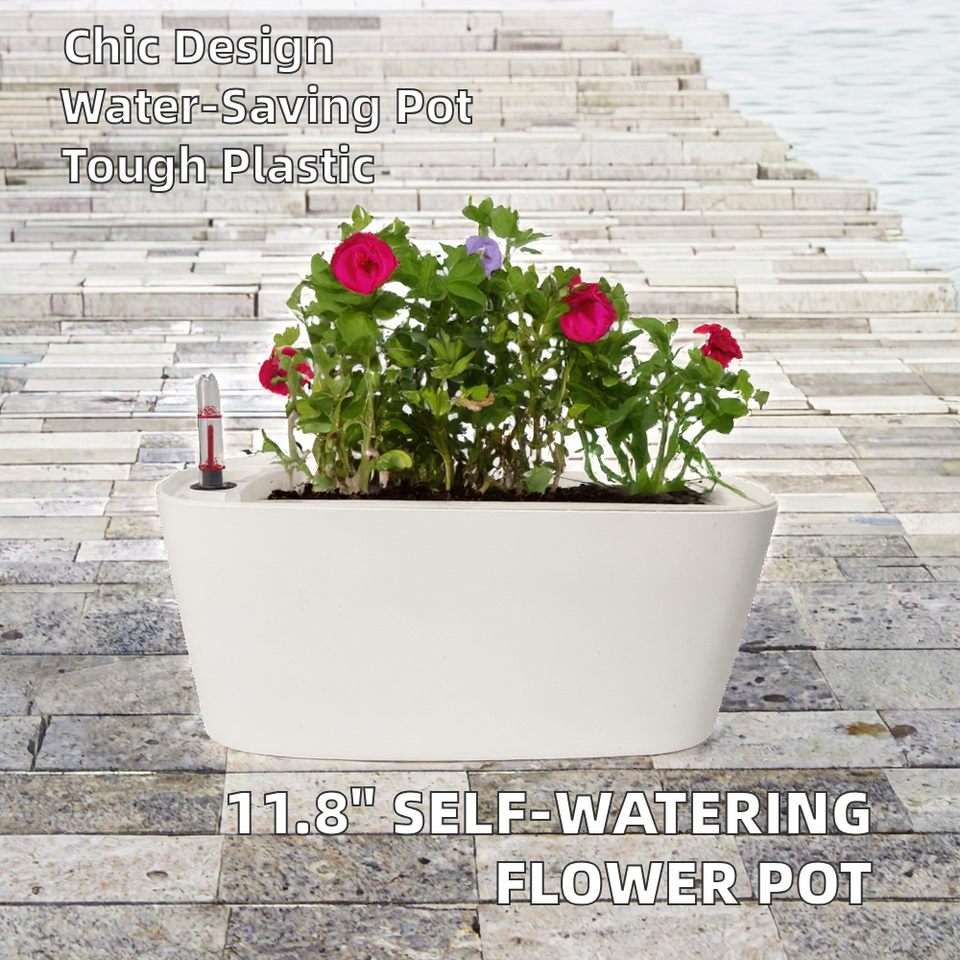 กระถางดอกไม้ทรงสี่เหลี่ยมขนาด 11.8 นิ้ว สีขาว รดน้ำเองได้ เป็นมิตรกับสิ่งแวดล้อม น้ำหนักเบา ผลิตจากพลาสติก PP ยี่ห้อ Miho สำหรับสวนและบ้าน