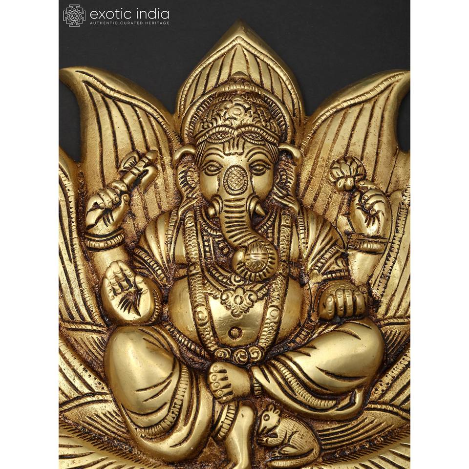 พระพิฆเนศทองเหลือง11 \ "รูปปั้นแขวนผนังดอกบัวออกแบบอย่างประณีตสำหรับตกแต่งบ้าน