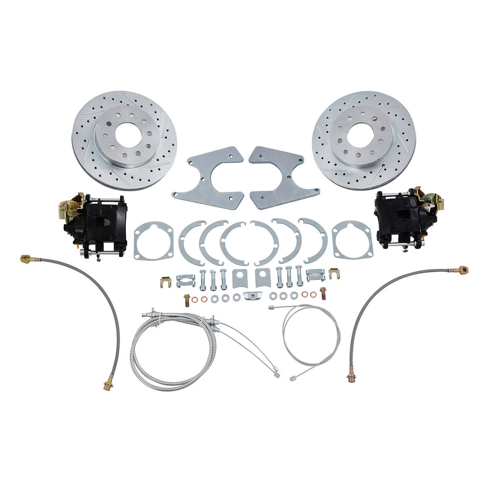 ชุดดิสก์เบรกหลังขนาด 11 นิ้ว แบบเจาะรู/แบบร่อง สีดำ พร้อมคาลิปเปอร์ สำหรับรถเชฟโรเลต อิมพาลา เบลแอร์ สตรีท ร็อด ปี 1955-68 อะไหล่รถคลาสสิก