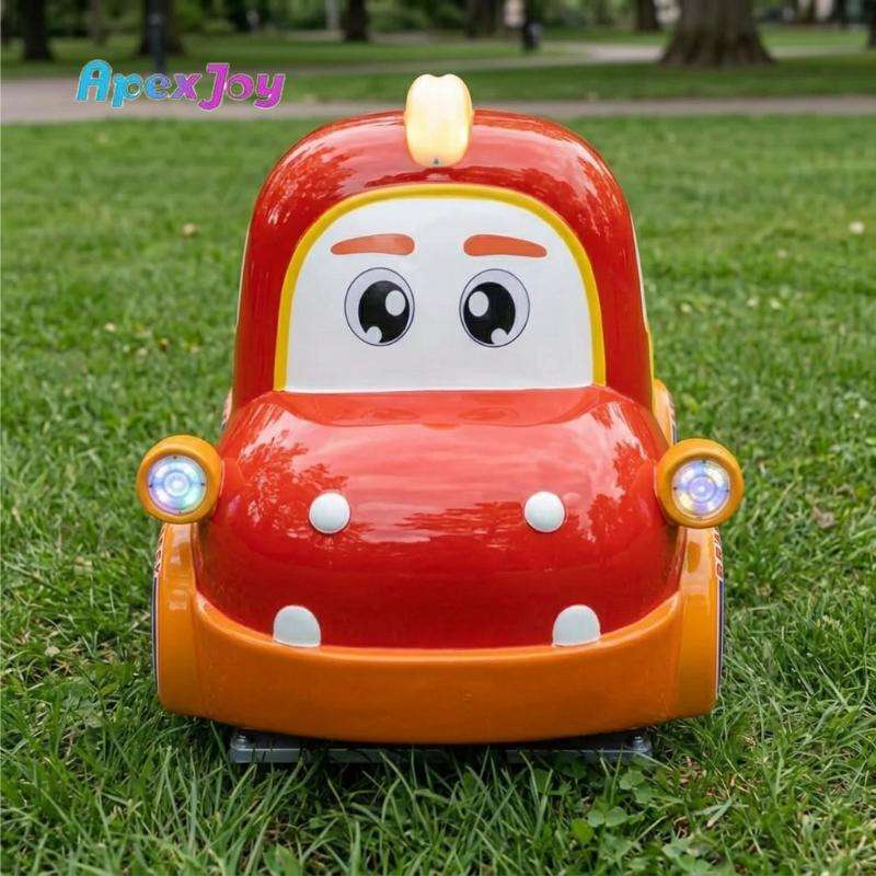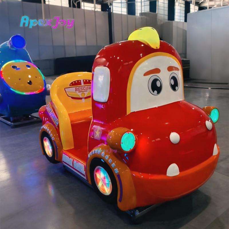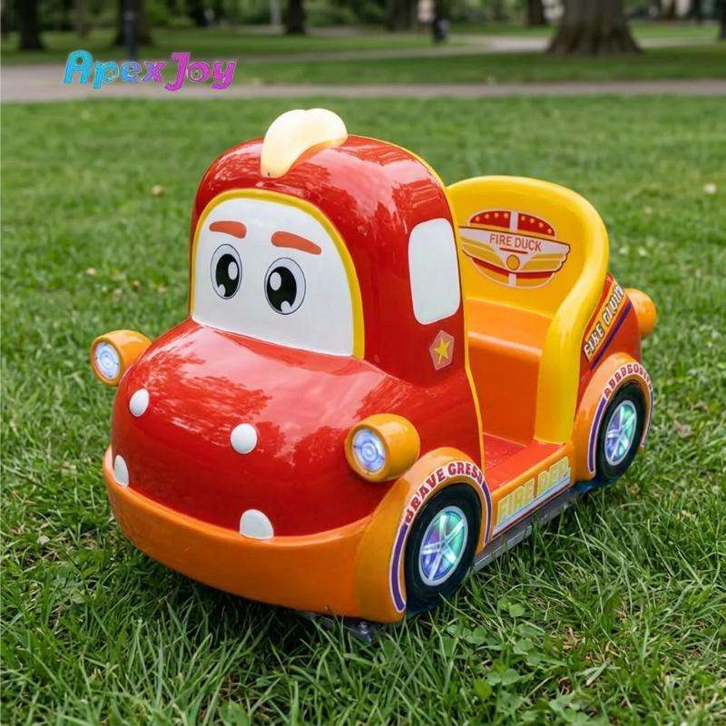 รถสวิงไฟฟ้าไฟเบอร์กลาสแบบหยอดเหรียญสำหรับเด็ก รูปทรงรถดับเพลิงไดโนเสาร์ขนาดเล็ก พร้อมหน้าจอ LCD MP5 ขนาด 11 นิ้ว เหมาะสำหรับห้างสรรพสินค้าและเกมเซ็นเตอร์