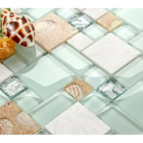 11 PCS Green Lake Glass Mix Stone Resin Mosaic Beach Style Backsplash Tile for Living Room Supermarket Interior Firebrick