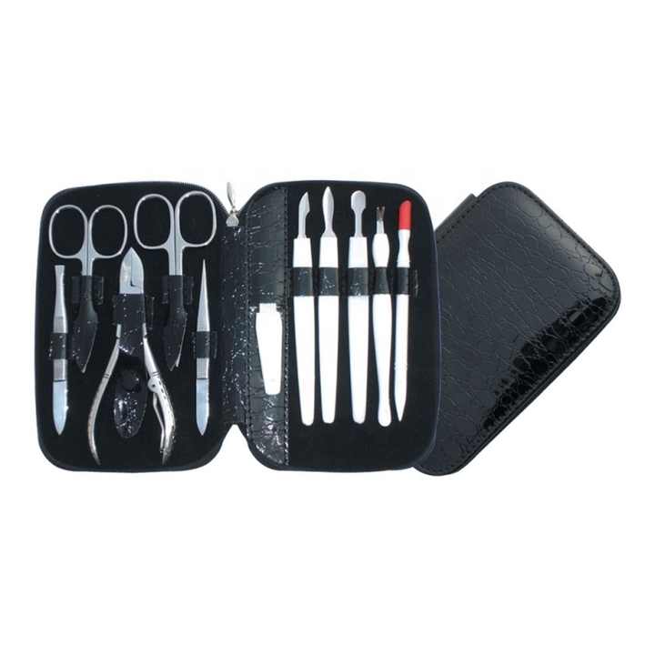 ชุดแต่งเล็บมืออาชีพครบชุด 11 ชิ้นมีสีที่กําหนดเองพร้อมเครื่องมือโลโก้ที่ทําจากสแตนเลส