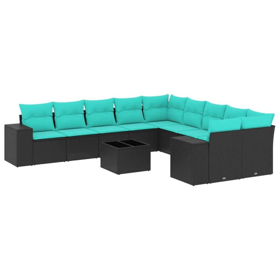 11-Piece Black Poly Rattan Garden Sofa Set with Cushions