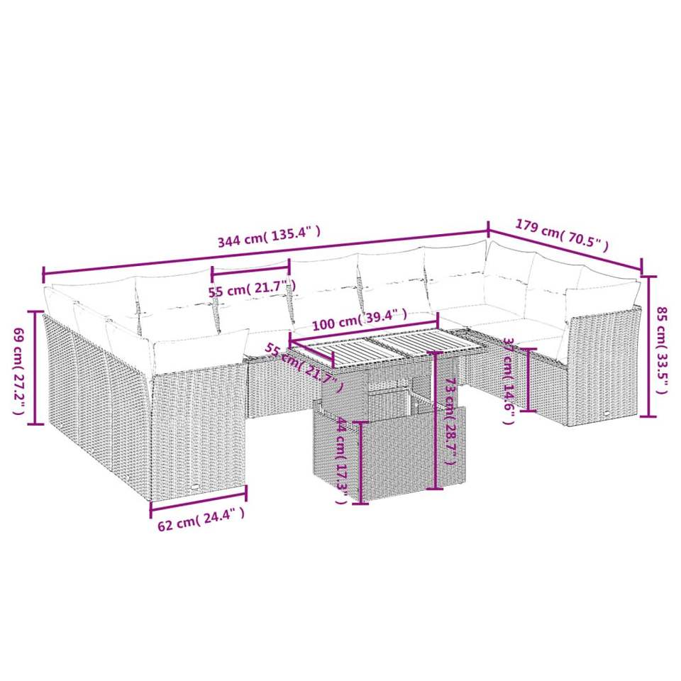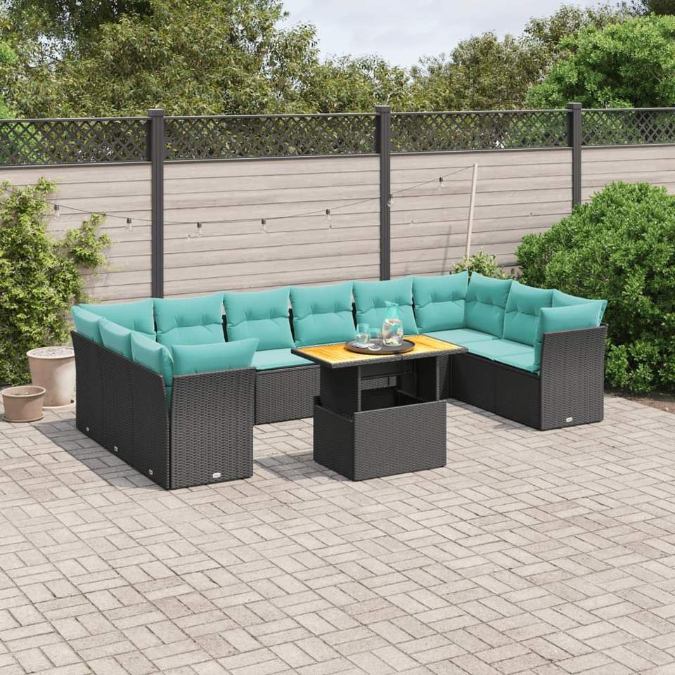 ชุดโซฟาลานบ้านหวายโพลีสีดำ 11 ชิ้นพร้อมเบาะรองนั่งสำหรับโซฟาในสวน