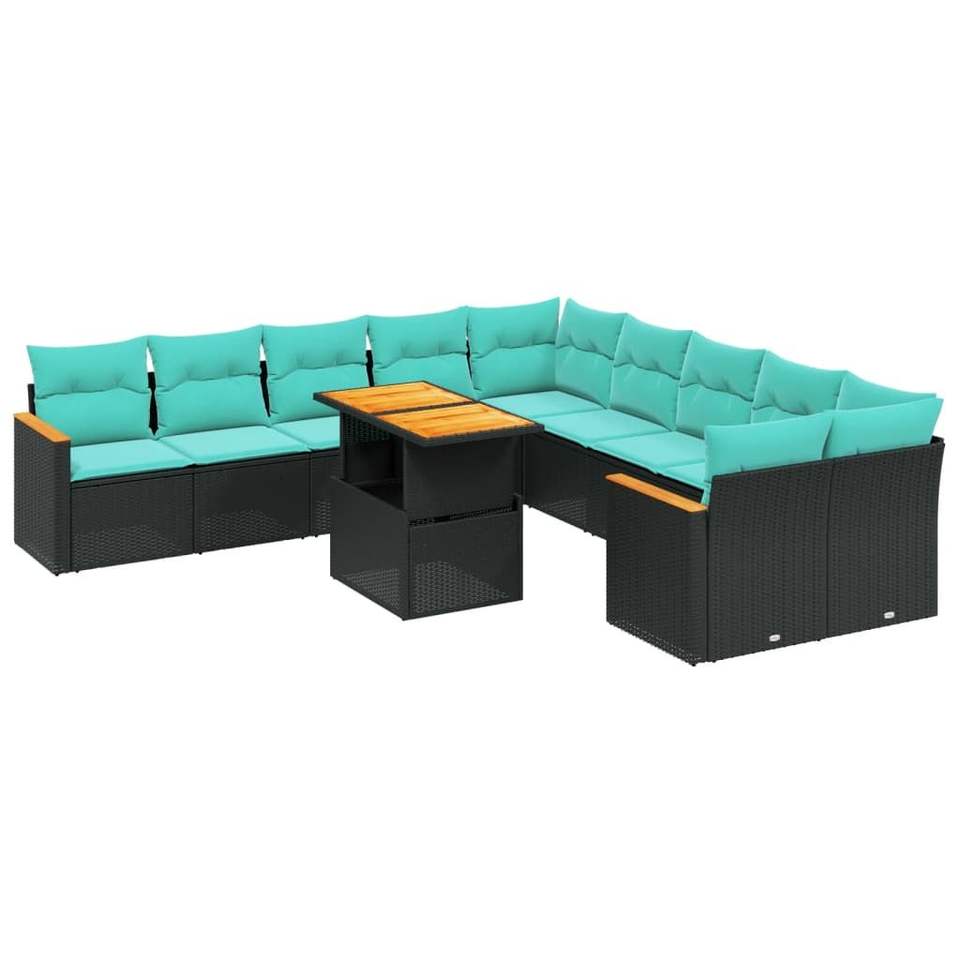 ชุดโซฟาลานบ้านหวายโพลีสีดำ 11 ชิ้นพร้อมเบาะรองนั่งสำหรับโซฟาในสวน