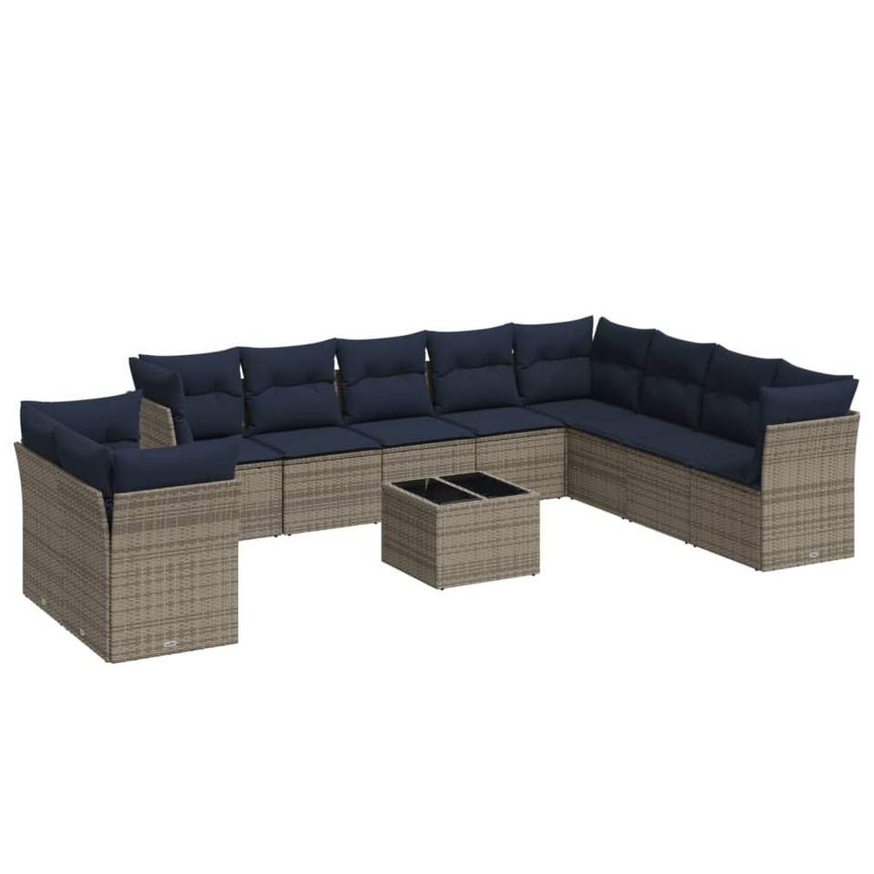 ชุดโซฟาลานบ้านหวายโพลีสีเทา 11 ชิ้นพร้อมชุดเบาะรองนั่งในสวน