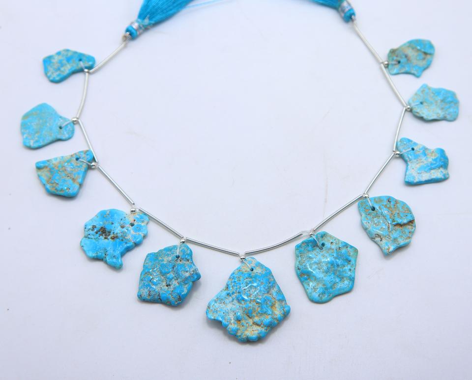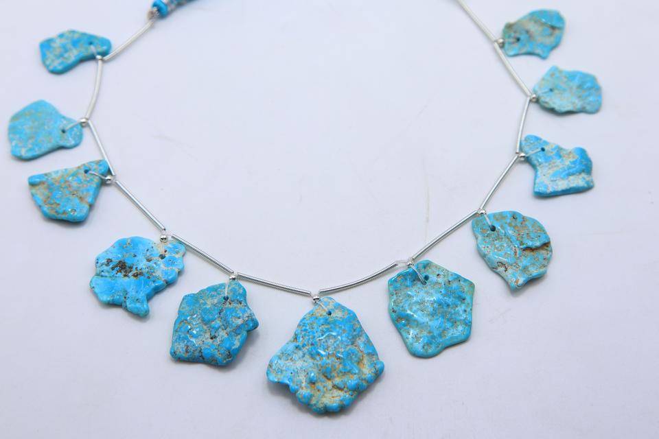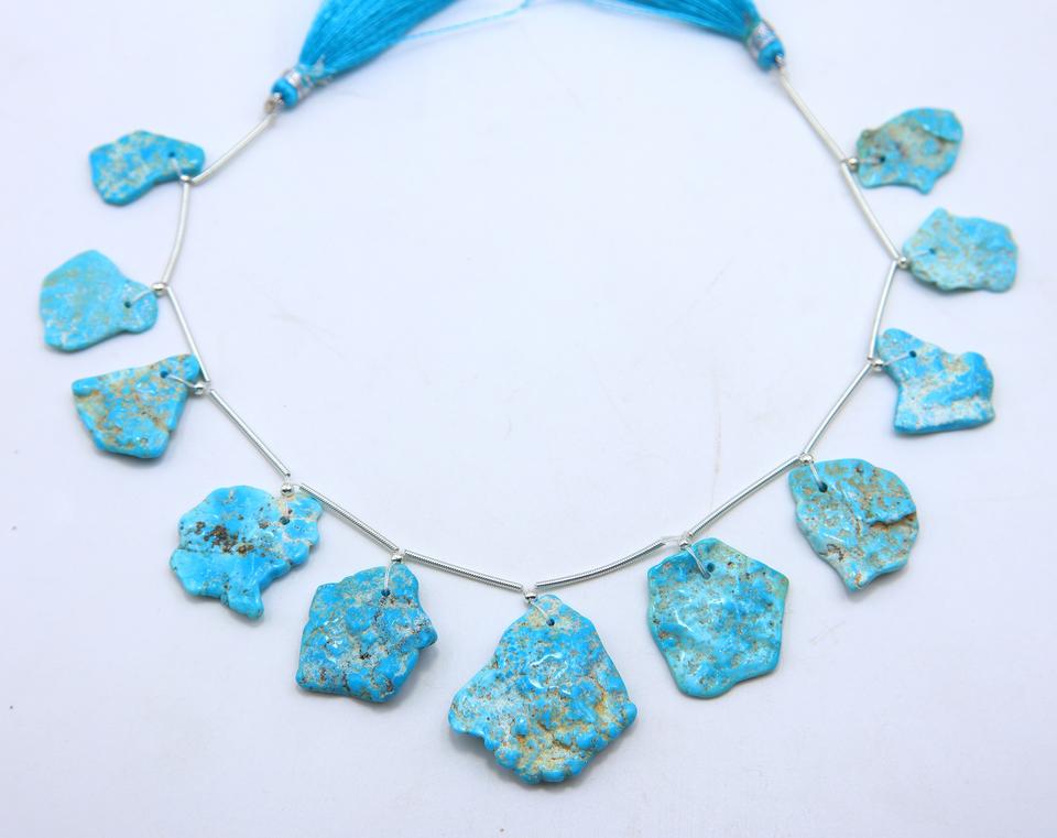 ลูกปัดเทอร์ควอยซ์อะริโซนาแบบเรียบ 11 เม็ด เจาะรูด้านหน้า ร้อยเป็นเส้น ลูกปัดพลอยธรรมชาติสำหรับทำเครื่องประดับ