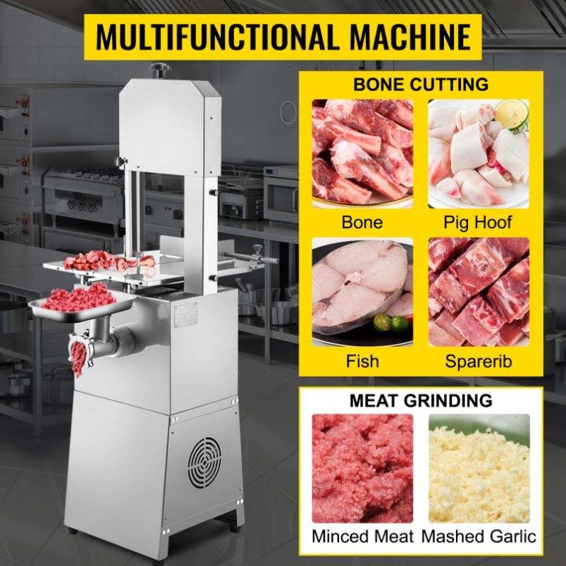 1100W Professional Meat Cutting Band Saw With Built-in Grinder 1.5hp Motor 2 in 1 Bone Saw Machine and Meat Cutting Machine