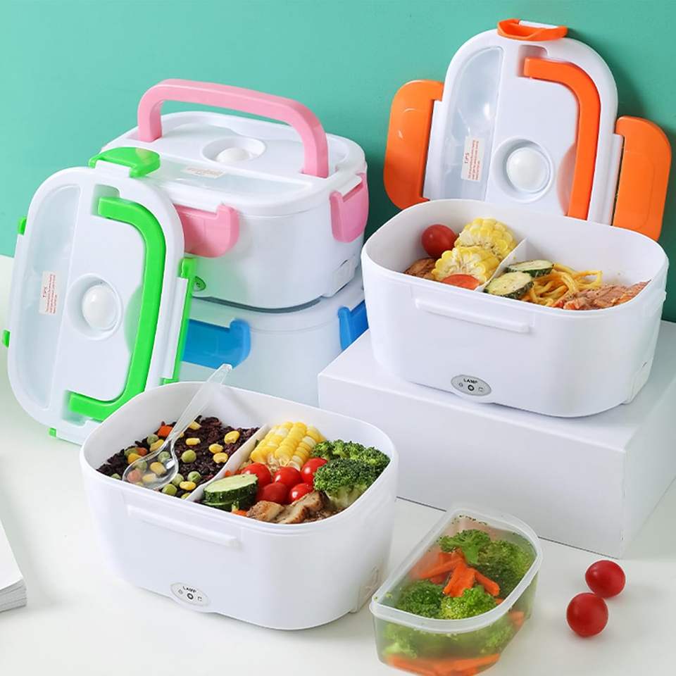 กล่องข้าวอุ่นร้อนไฟฟ้าแบบพกพา 110V/220V ทำจากพลาสติก กล่องอาหารกลางวันเก็บความร้อน