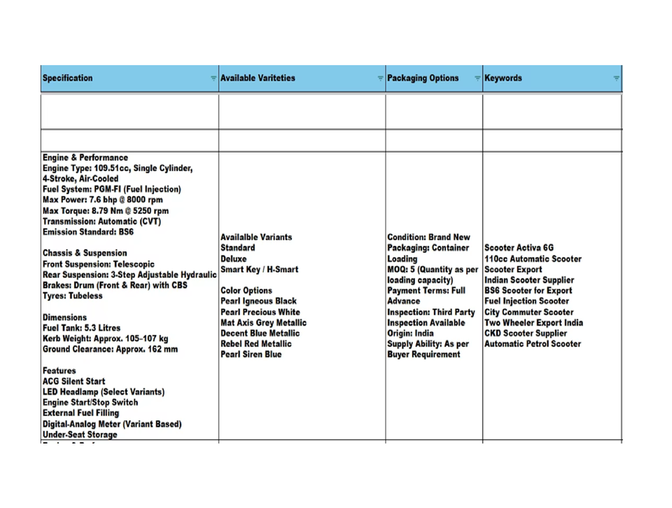 รถสกู๊ตเตอร์ Activa 6G BS6 110 ซีซี ระบบหัวฉีดน้ำมันเชื้อเพลิง เกียร์อัตโนมัติ ประหยัดน้ำมัน ดีไซน์ทันสมัย ขับขี่สบาย เหมาะสำหรับการใช้งานในเมืองทุกวัน