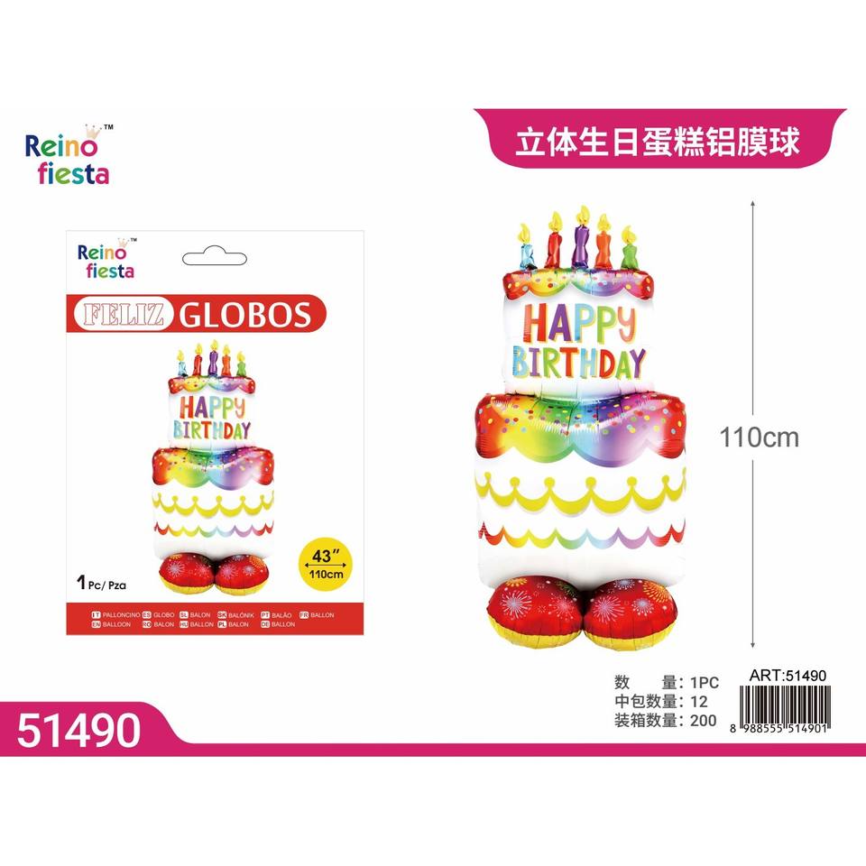 ลูกโป่งอลูมิเนียมฟอยล์สุขสันต์วันเกิดรูปทรงเค้กอุปกรณ์ตกแต่งงานปาร์ตี้ขนาด110ซม.