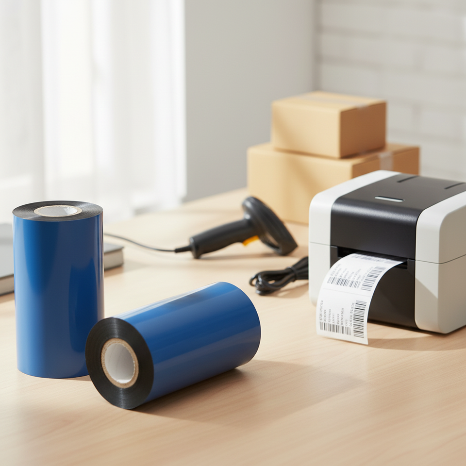 ริบบิ้นถ่ายโอนความร้อนขนาด 110 มม. x 300 ม. หมึกเรซินสีดำ แกนกลางขนาด 1 นิ้ว สำหรับพิมพ์บาร์โค้ด