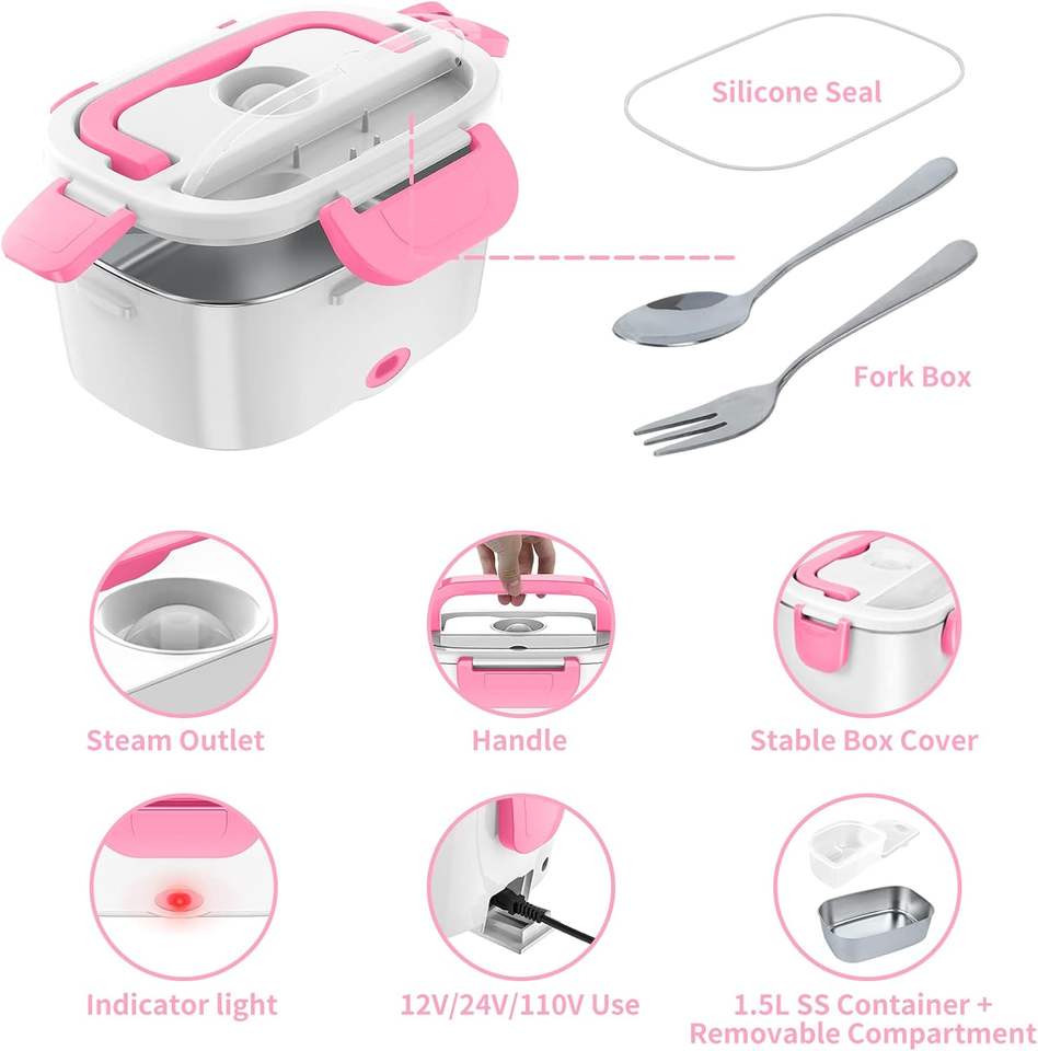 กล่องข้าวไฟฟ้าอุ่นร้อนแบบพกพาสำหรับเด็ก ใช้ในรถยนต์หรือวางบนโต๊ะได้ วัสดุสแตนเลส ใช้ไฟ 110v/12v พร้อมกระเป๋าหิ้ว