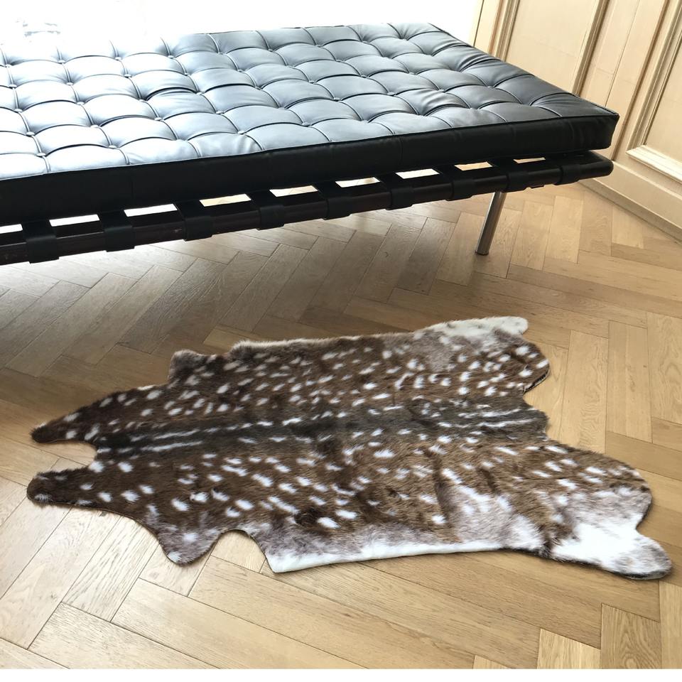 พรมขนสัตว์เทียมลายกวางซิก้า ขนาด 110x90 ซม. ผลิตด้วยเครื่องจักรทันสมัย ทำจากโพลีเอสเตอร์ ขนยาว นุ่ม ล้างทำความสะอาดได้ ลายสัตว์ ตกแต่งบ้าน ห้องนอน