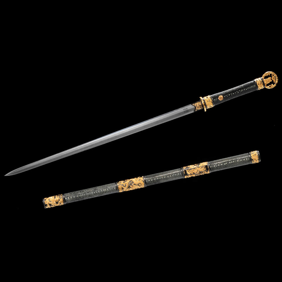 ดาบเหล็กแปดเหลี่ยมลายแตกน้ำแข็งเมืองหลงฉวน ยาว 111 ซม. ดาบเหล็กชุบทอง งานฝีมือระดับสูง ของสะสมระดับไฮเอนด์
