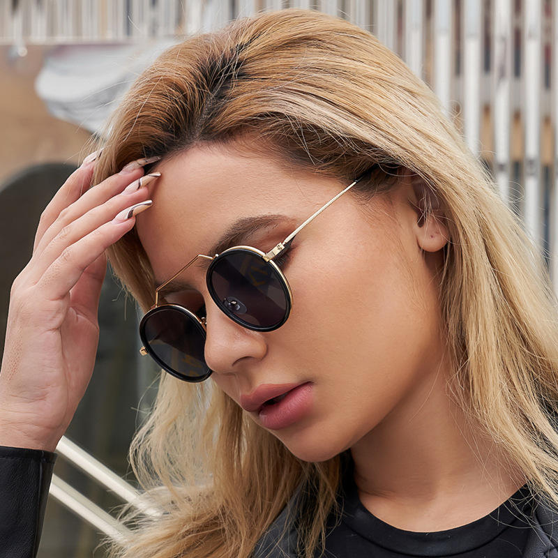 1120 แว่นตากันแดดผู้หญิงแฟชั่นทรงกลมย้อนยุคป้องกันรังสียูวี 400 สไตล์สตรีทกลางแจ้ง C1 สีเทาทอง C2 สีชาเต็ม C3 สีขาว