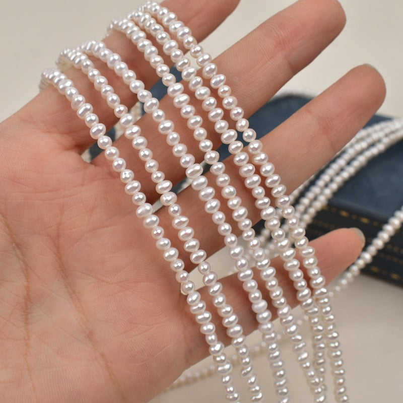 สร้อยคอมุกน้ำจืดธรรมชาติทรงกลม 1142 เม็ด ขนาด 3-4 มม. สีขาวอมชมพูและหลากสี งานกำลังดำเนินการ