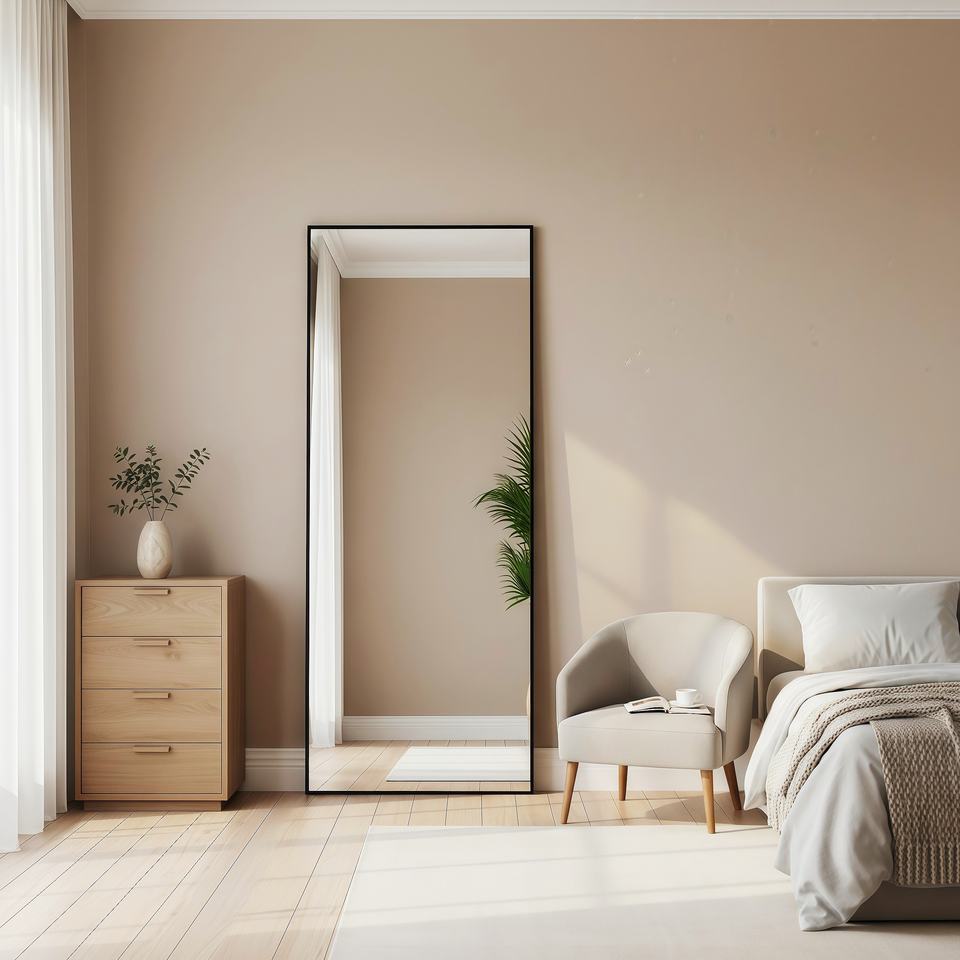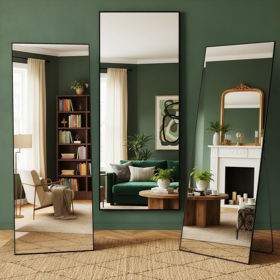 กระจกเงาเต็มตัวขนาด 115*40 ซม. กรอบพลาสติก กระจกนิรภัย ดีไซน์อาร์ตเดโค ติดผนังได้ ตกแต่งบ้าน งานแฮนด์เมด กรอบบาง