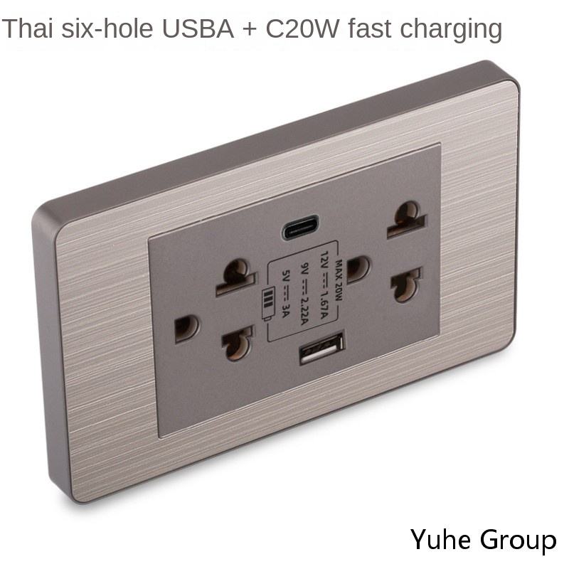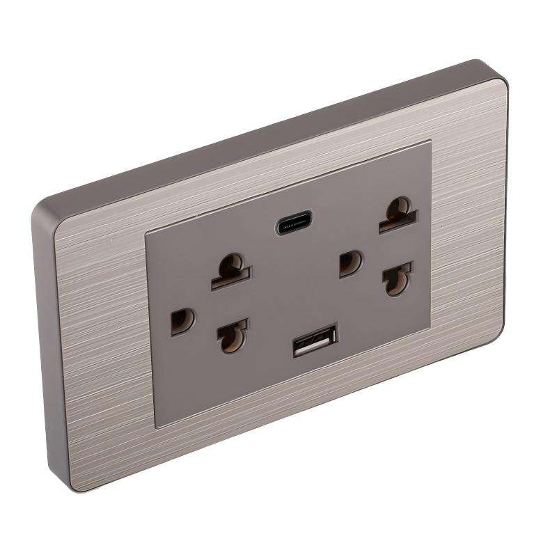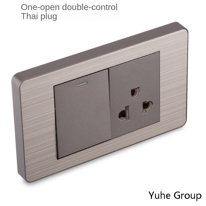 118 Series Thai Standard Double-Wall Stainless Steel Brushed Panel Household Multi-Plug Socket 10A Touch Panel IP20 Electrical