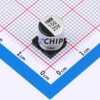 ตัวเก็บประจุแบบไฮบริดของแข็ง-ของเหลวอะลูมิเนียมอิเล็กโทรไลต์ชนิด SMD รุ่น 118EC466, ขนาด D8xL10 มม. 150uF 20% 25V 1.1A-100kHz
