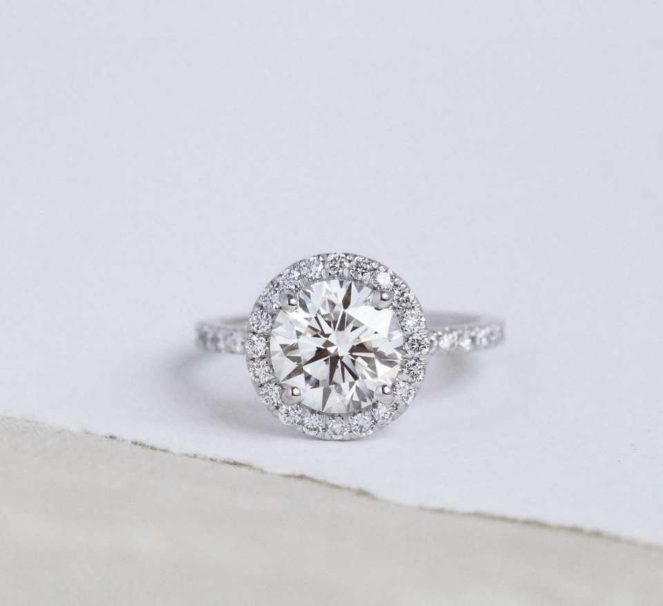 แหวนหมั้นเพชร CZ ทรงกลมตัด11มม. พร้อมรัศมีและสายสีเงิน | เครื่องประดับแต่งงานสุดหรู
