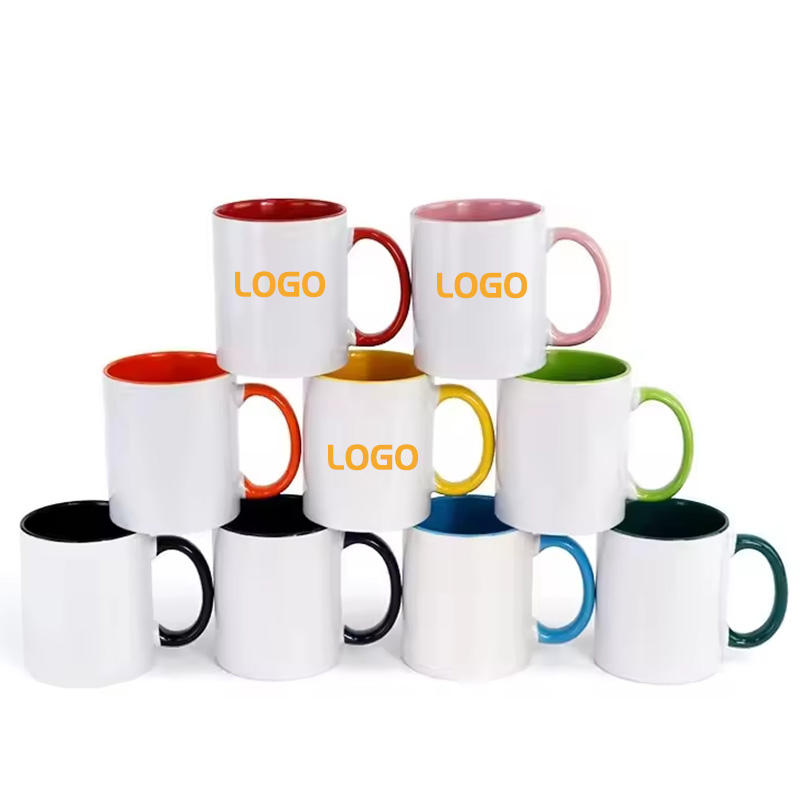 แก้วเซรามิคเคลือบสีขาวขนาด 11 ออนซ์ คุณภาพสูง พร้อมหูจับและขอบสีสันสดใส สำหรับงานซับลิเมชั่น สามารถสกรีนโลโก้ได้