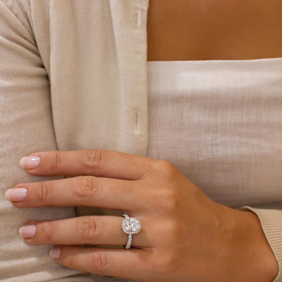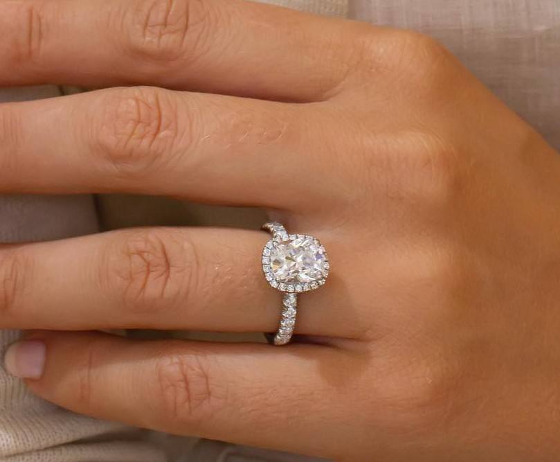 11x9มม. เบาะยาวตัดสีขาวฮาโลแหวนหมั้นแหวนทองแหวนเงินผู้หญิง | เครื่องประดับ CZ