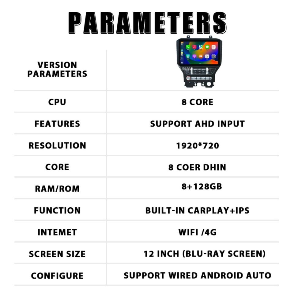 วิทยุติดรถยนต์ขนาด 12.1 นิ้ว สำหรับรถฟอร์ด มัสแตง ปี 2014 - 2021 ระบบแอนดรอยด์ 12 หน้าจอแนวตั้ง พร้อมระบบนำทาง GPS มัลติมีเดีย เครื่องเล่นดีวีดีในรถยนต์