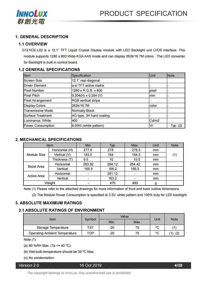 หน้าจอ LCD ขนาด12.1นิ้ว G121ICE-L02 G121X1-L01 G121X1-L02 G121X1-L04 G121X1-L03โมดูลจอ LCD ขนาด12นิ้ว