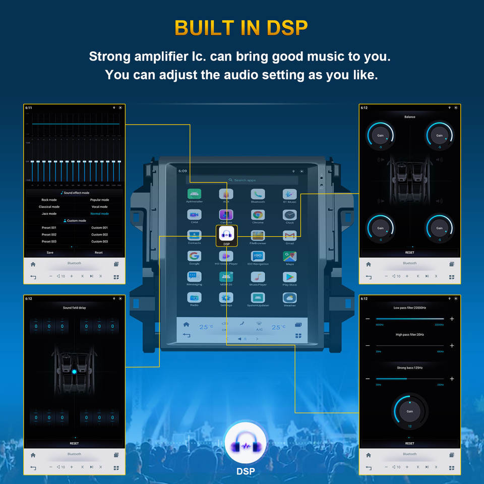 GPS, สเตอริโอ, แฮนด์ฟรี, RGB, รีโมทคอนโทรล, DSP, คาร์เพลย์, Mirror Link, Android Auto, ภาพในภาพ, ไมโครโฟนในตัว, หน้าจอแยก, File Manager, ควบคุมพวงมาลัยรถยนต์, ลำโพงในตัว, ออฟไลน์แผนที่, มัลติทัชฟังก์ชัน