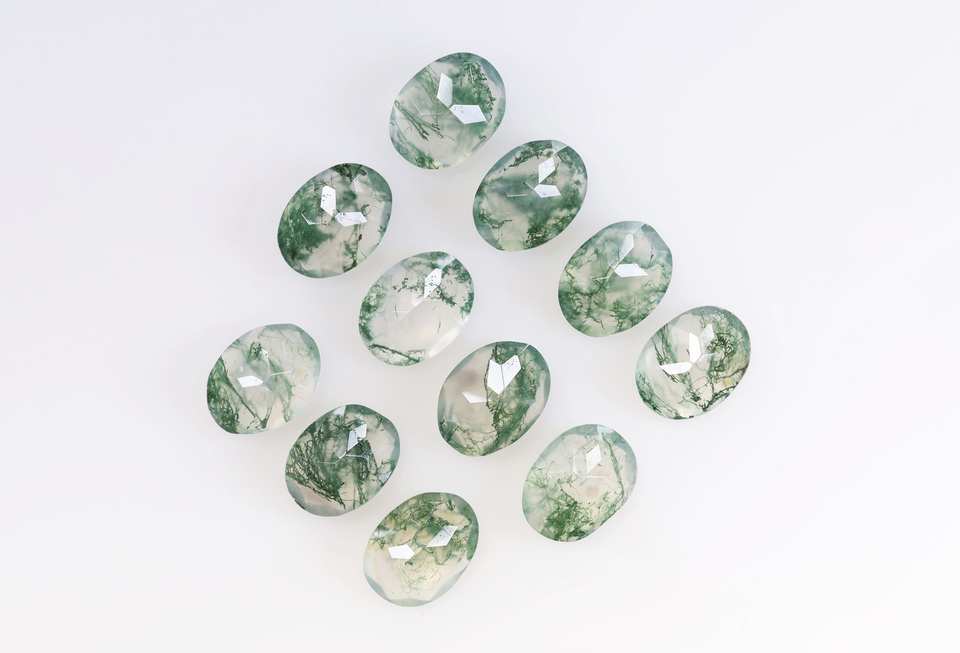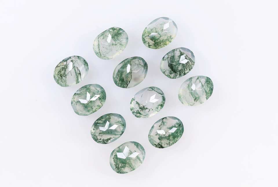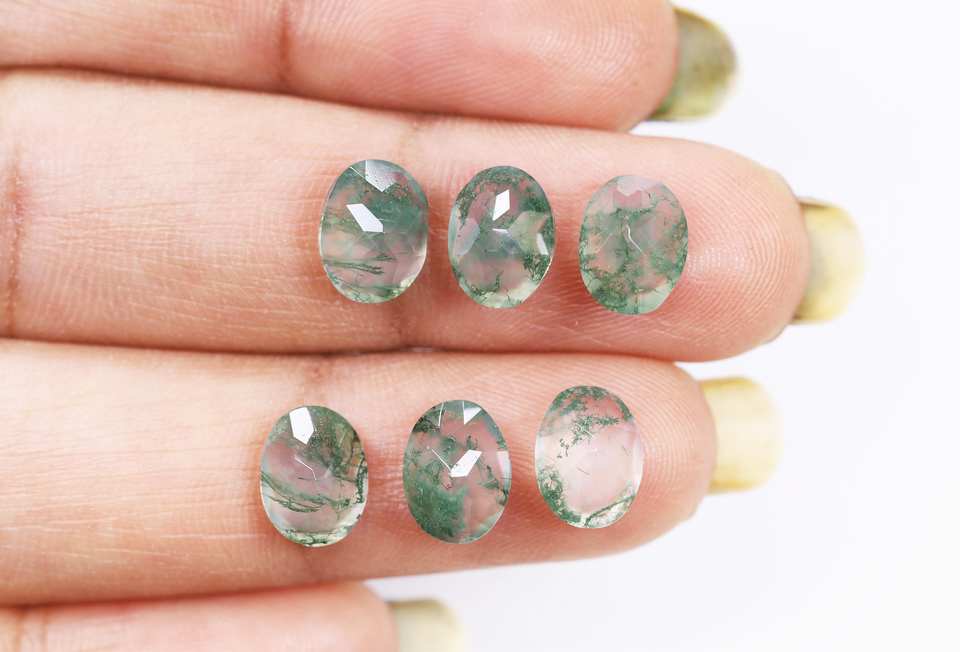 12.13 Ct 8.0 - 6.1 -3.9 มม.แฟนซีสีเขียวรูปไข่มอสอาเกตอัญมณีหลวมสําหรับแหวนหมั้นของขวัญลูกสาวWowอัญมณี