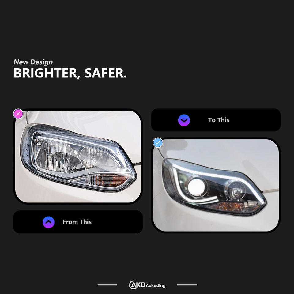 12-14สำหรับ Ford โฟกัสไฟหน้าโปรเจคเตอร์เลนส์ DRL ประกอบสัญญาณ3LED 55W สภาพใหม่สำหรับ bronco รถยนต์