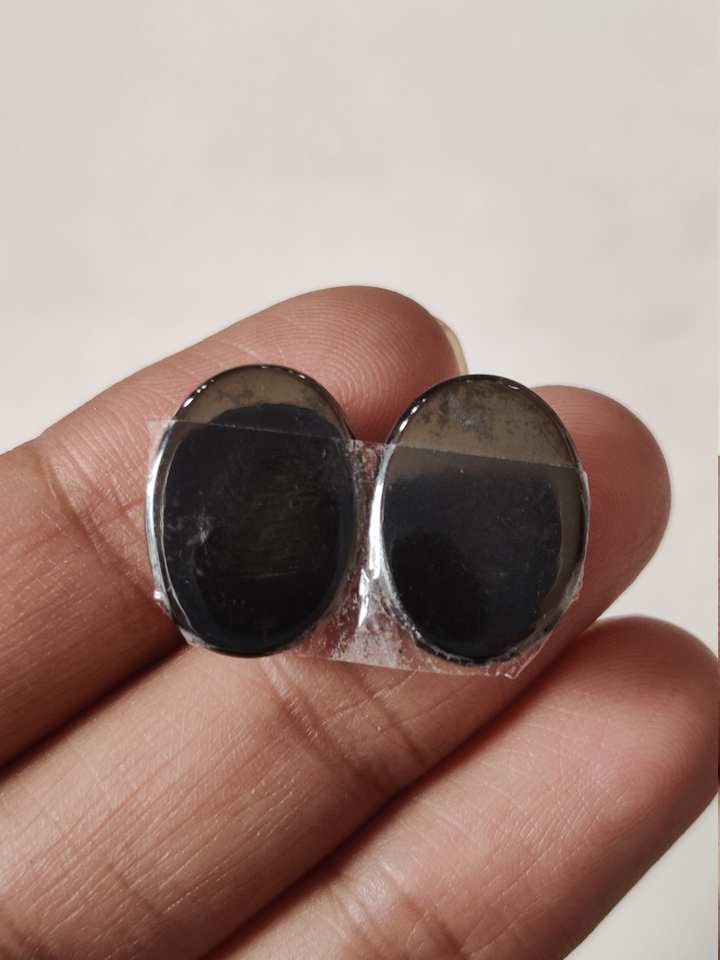 พลอยเนื้อโลหะแร่ออกไซด์ธรรมชาติ100% คู่อัญมณีอัญมณีทรงวงรีทรงหลวมสีดำสดใส