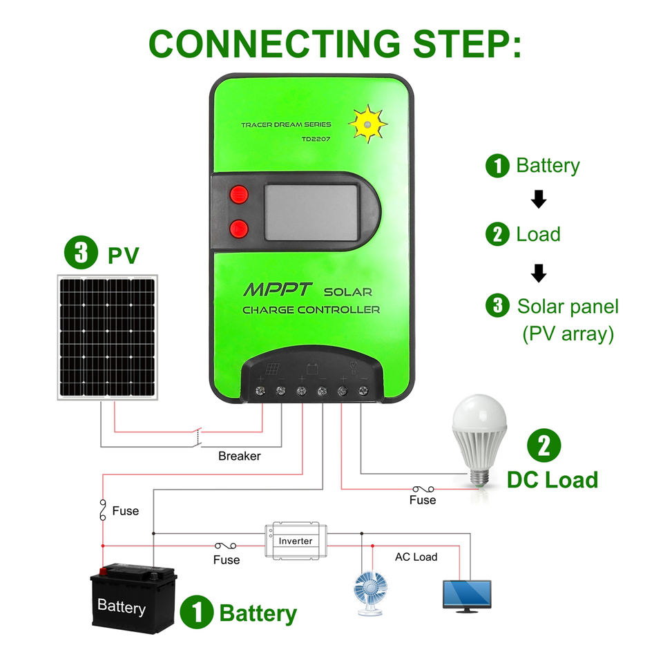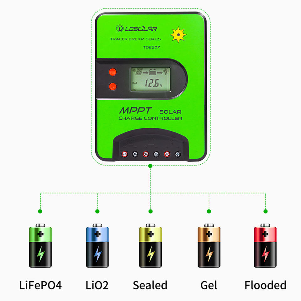 ระบบควบคุมพลังงานแสงอาทิตย์แบบกริด20A 12/24V สำหรับระบบสุริยะพร้อมแอป Wifi ฟรี