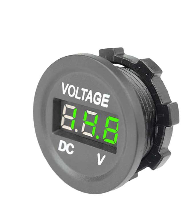 เครื่องวัดแรงดันไฟฟ้ากระแสตรงแบตเตอรี่รถยนต์ 12-24V ตัวเรือน PC กันไฟ ไฟ LED สีแดง/เขียว/น้ำเงิน -40-80 องศาเซลเซียส ได้รับการรับรอง CE/FCC