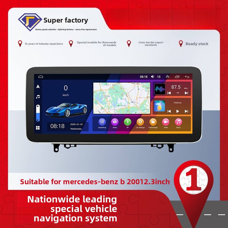 เครื่องเล่นดีวีดีในรถยนต์12.3นิ้วระบบแอนดรอยด์พร้อมบลูทูธจีพีเอสนำทางสำหรับ B200เมอร์เซเดส