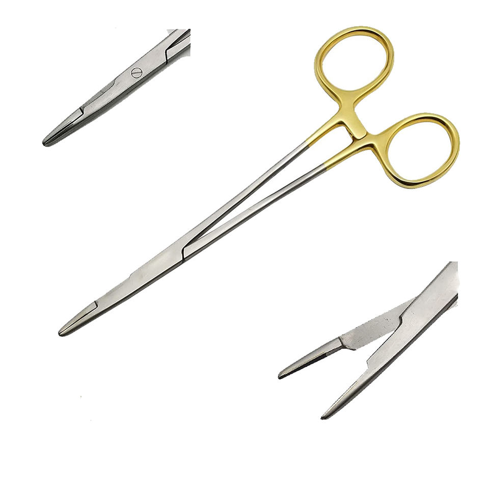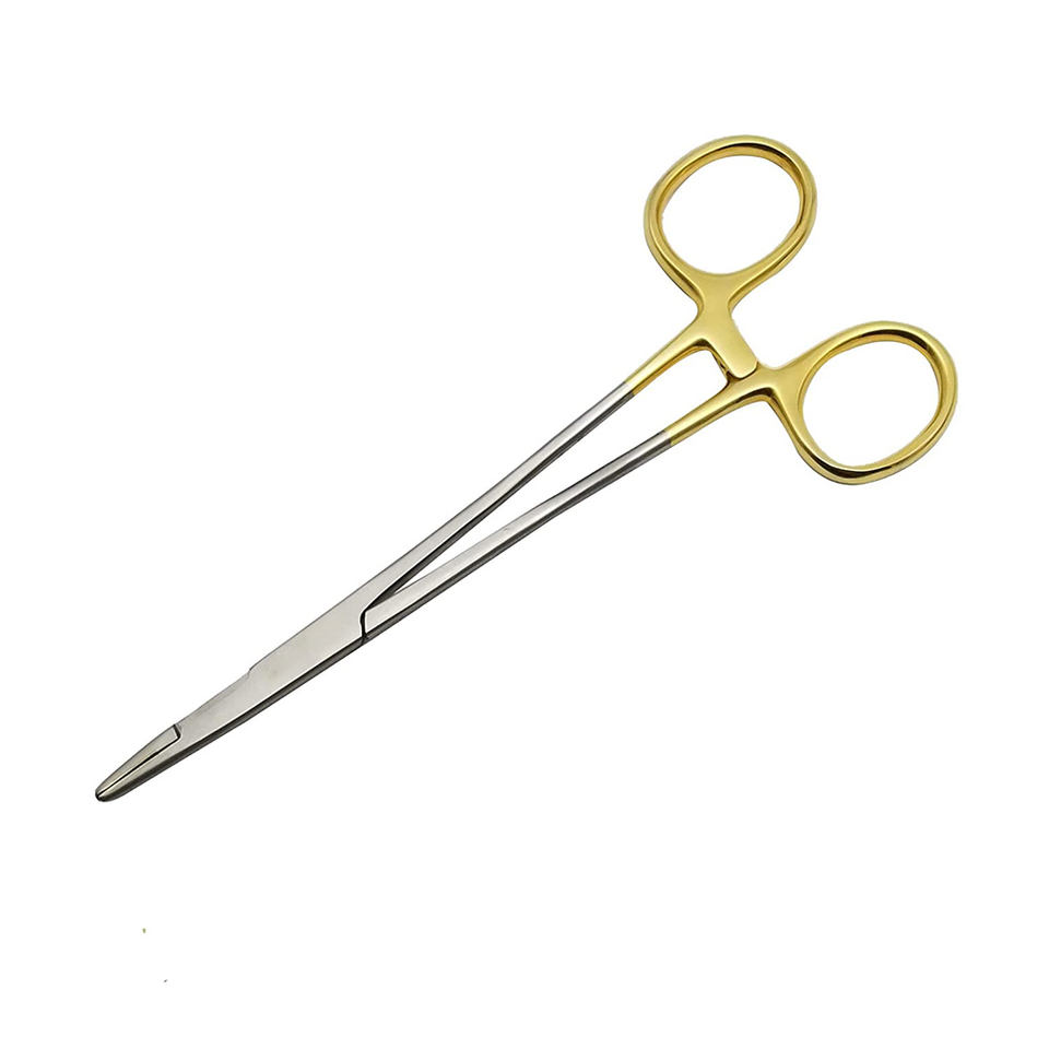 ที่จับเข็มเย็บผ่าตัดสแตนเลสแบบใช้ซ้ำได้ ขนาด 12.5 ซม. ด้ามจับสีทอง ทนความร้อนสูง ใช้สำหรับฆ่าเชื้อ