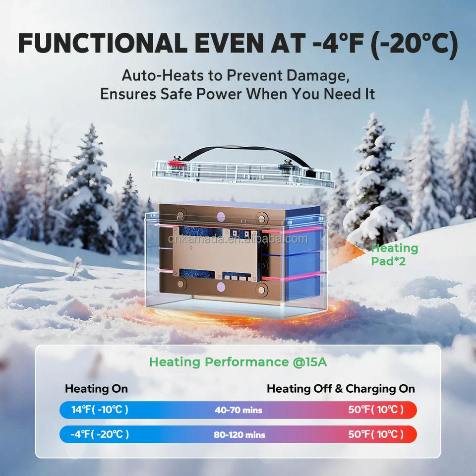 แบตเตอรี่ LiFePO4 12.8V 60Ah กลุ่ม 24 แบบอเนกประสงค์ พร้อมบลูทูธ แอปพลิเคชันควบคุม ระบบทำความร้อนอัจฉริยะ มาตรฐาน IP67 สำหรับเรือเดินทะเล มอเตอร์ลากจูง รถบ้าน และรถลากจูง