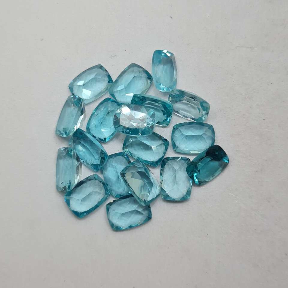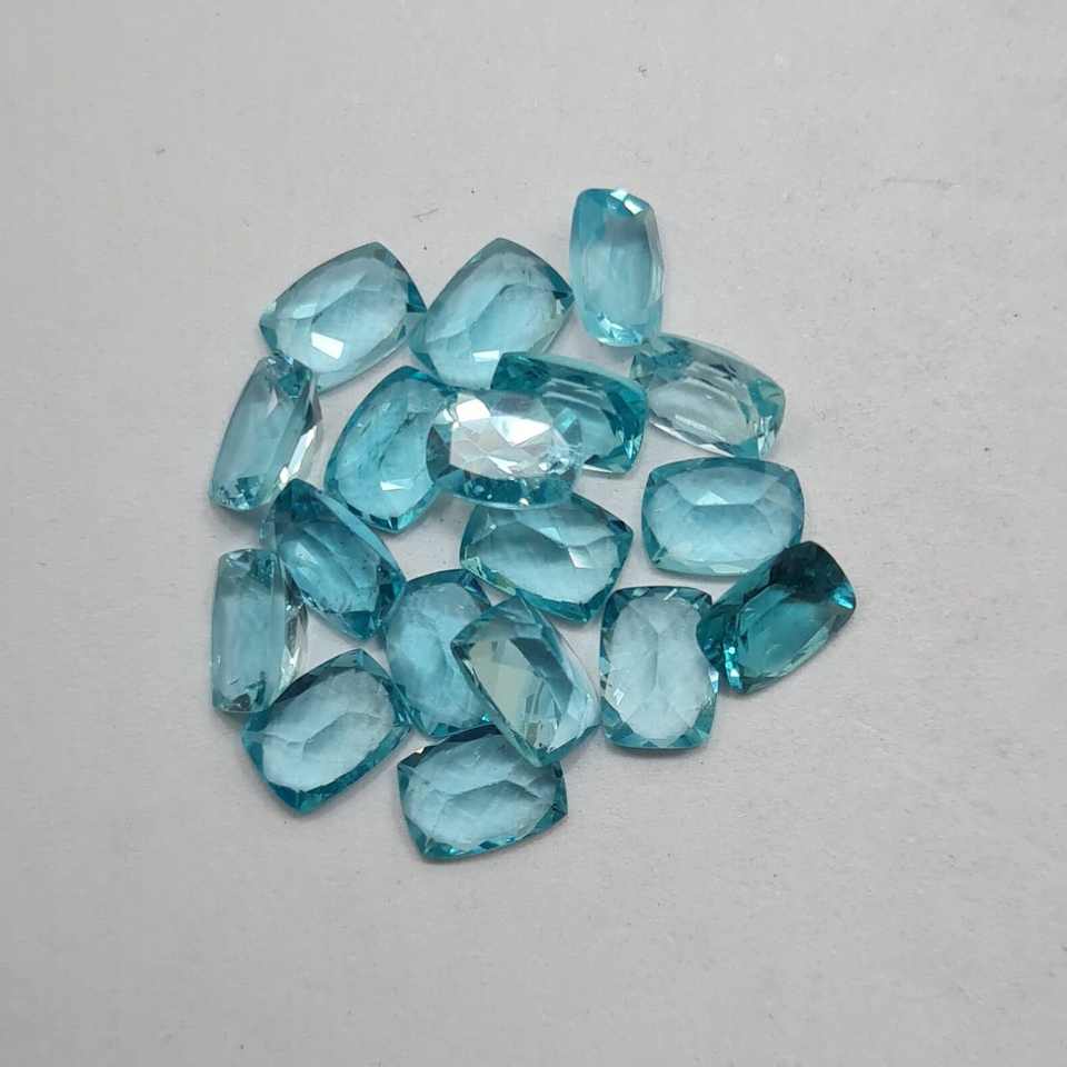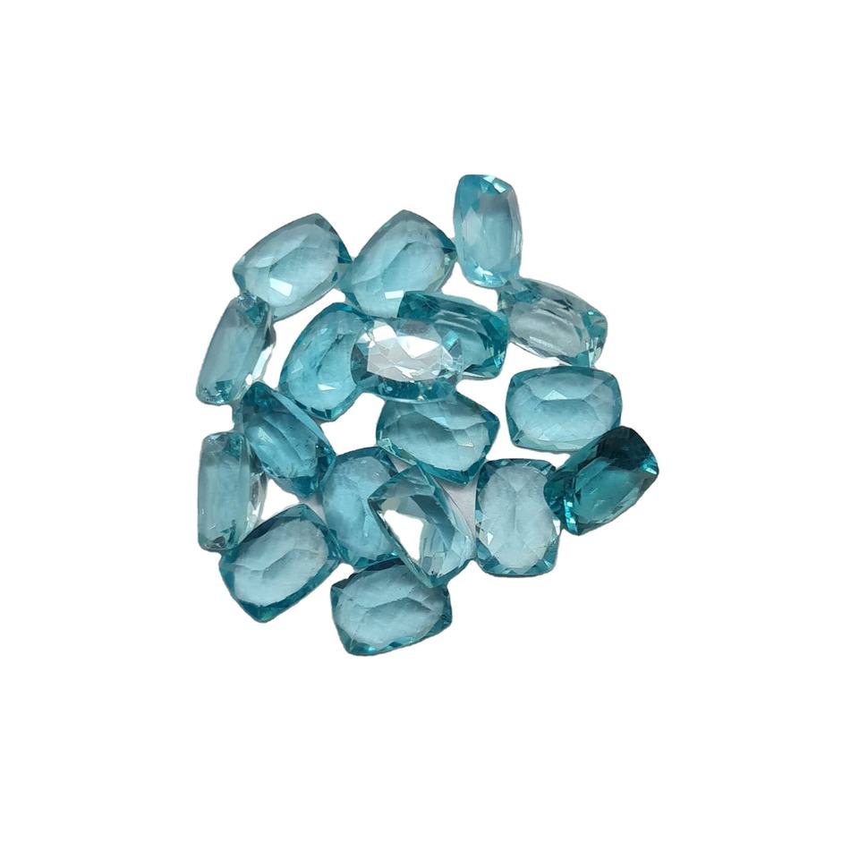 พลอยอะพาไทต์สีน้ำเงินธรรมชาติ 12 กะรัต ทรงคุชชั่นเจียระไนแบบเหลี่ยม สำหรับทำเครื่องประดับเพื่อสุขภาพ ใช้สำหรับงาน OEM จำหน่ายส่งจำนวนมาก GURU