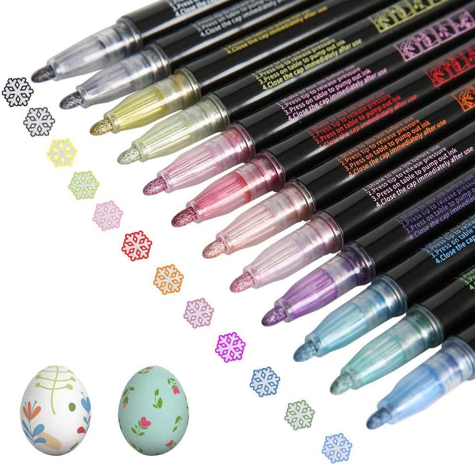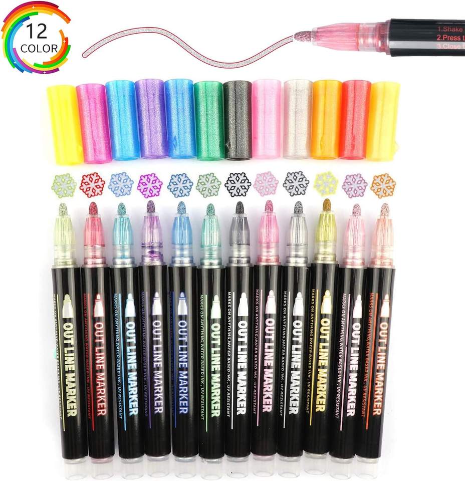 ปากกาเส้นขยุกขยิกประกาย12สีชุดปากกาเขียนเส้นคู่สำหรับการวาดภาพศิลปะ