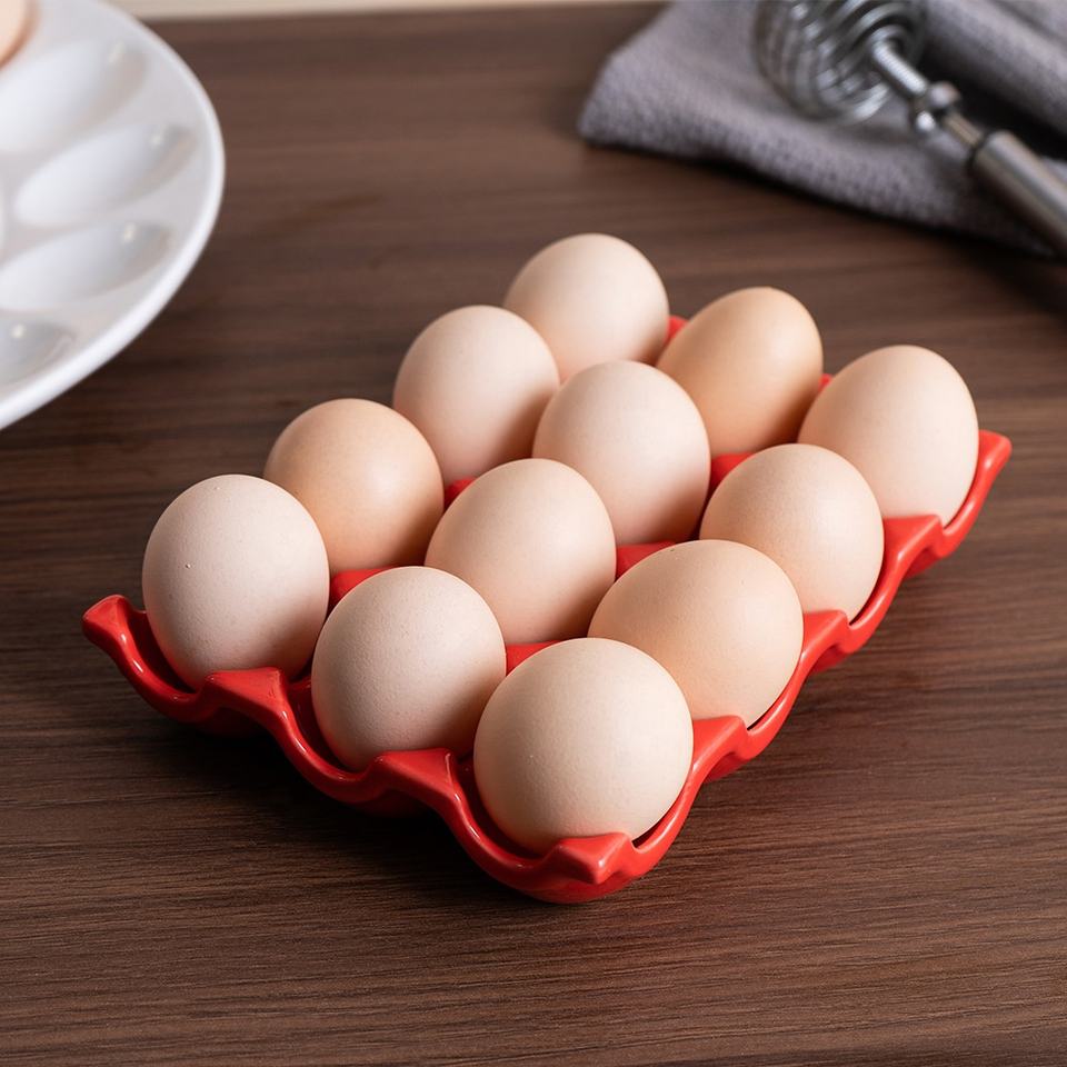 ที่ใส่ไข่เซรามิก 12 ฟอง สำหรับตู้เย็น | ถาดใส่ไข่พอร์ซเลน กล่องเก็บไข่ 12 ฟอง สำหรับตู้เย็น ท็อปเคาน์เตอร์ และตู้โชว์