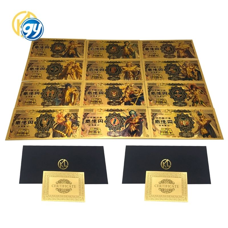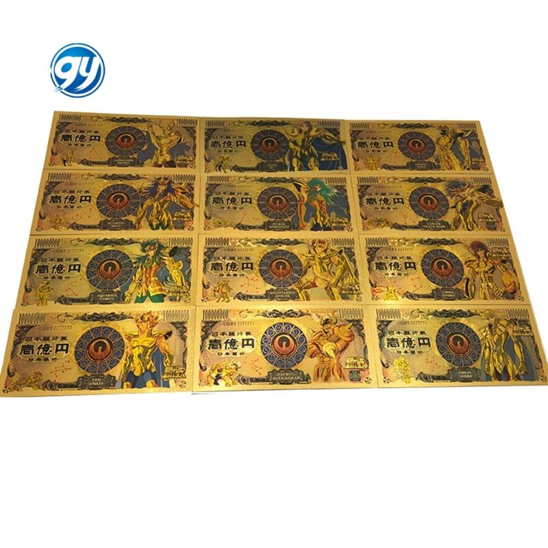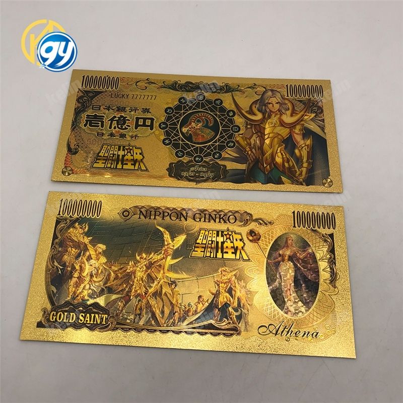 ธนบัตรสะสมพลาสติกสีทองลายอนิเมะนักบุญทอง 12 แบบจากญี่ปุ่น ราคา 10,000 เยน