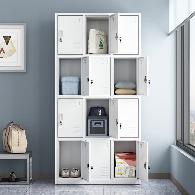 ล็อกเกอร์เหล็ก12ประตูทันสมัยสำหรับโรงเรียนและโรงพยาบาลห้องออกกำลังกายที่เก็บเสื้อผ้าตู้เก็บของโลหะสำหรับพนักงาน