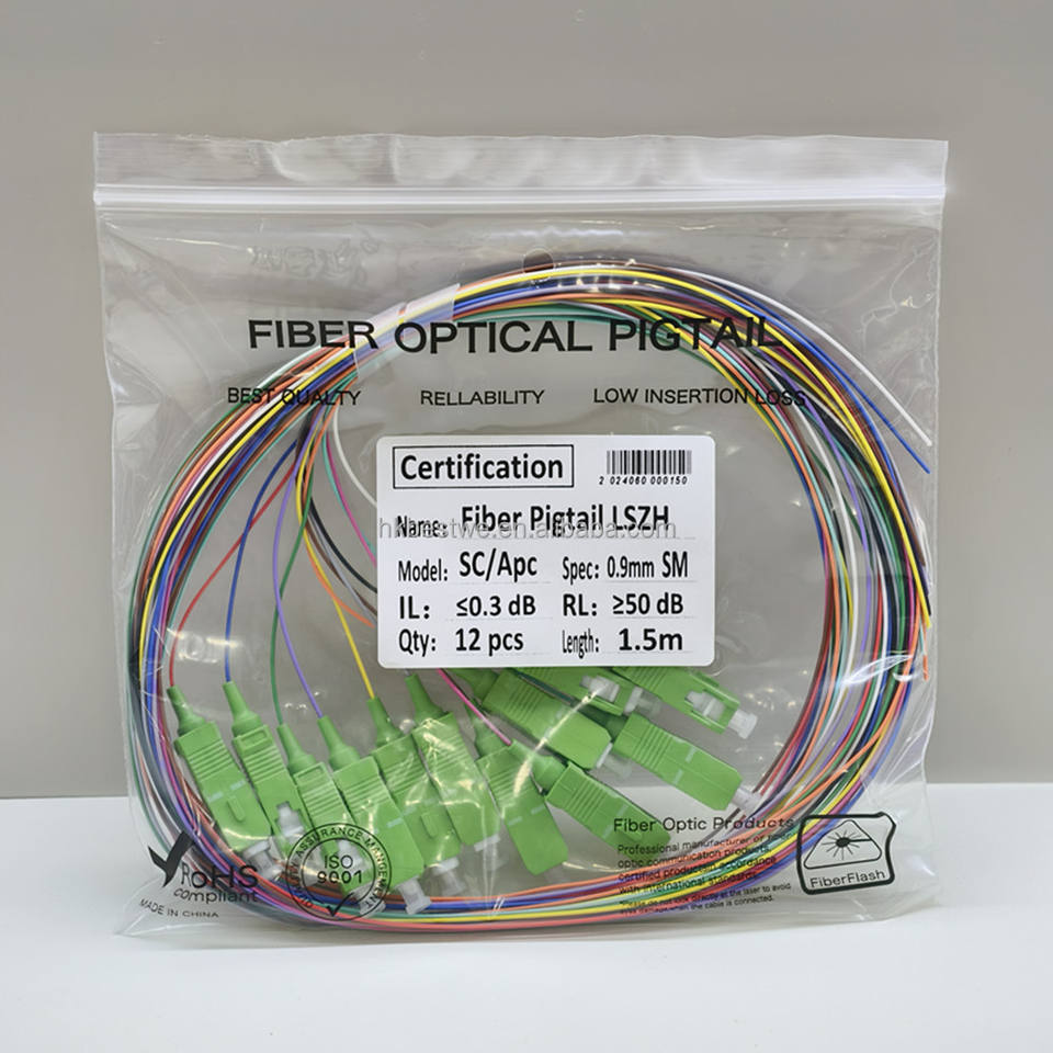 12-Fiber SMF Fiber Optical Cable Colorful LSZH Jacket 1.5m Single Mode SC Connectors APC Polish Fiber Pigtails G652D