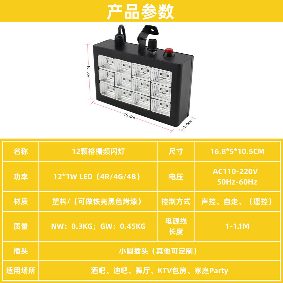 ไฟสโตรบ 12 ช่อง 18 เสียง ไฟแฟลชสำหรับเวที บาร์ คาราโอเกะ คลับ ใช้ภายในอาคาร