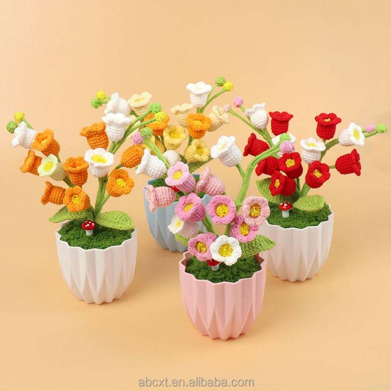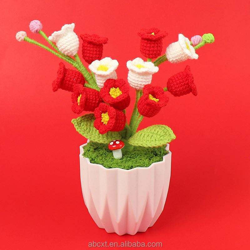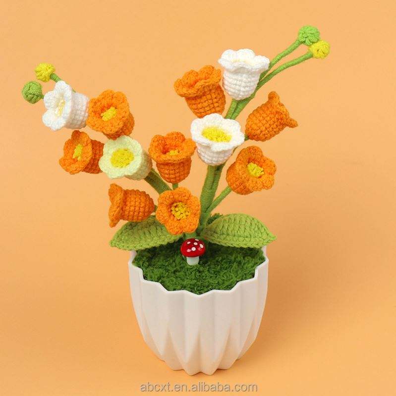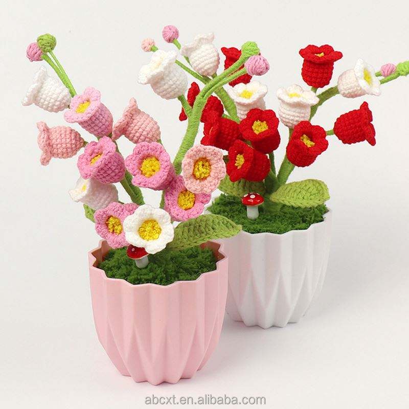 ดอกลิลลี่ถักโครเชต์ 12 ดอก พร้อมกระถางไหมพรม ทำด้วยมือ สำหรับตกแต่งบ้าน