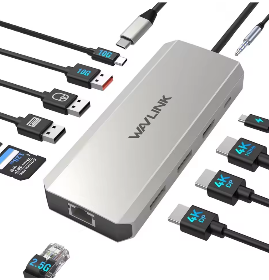 แท่นเชื่อมต่ออุปกรณ์ 12 in 1 Wavlink WL-UMD306B แบบ USB A และ USB C พร้อมพอร์ต Ethernet 2.5G และพอร์ต Display
