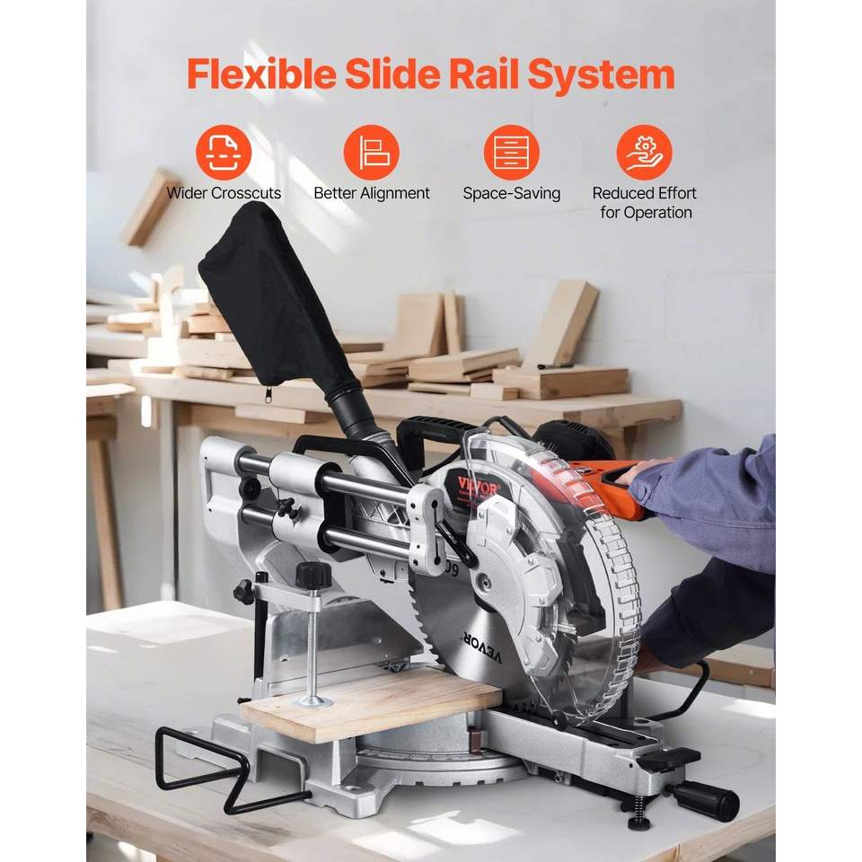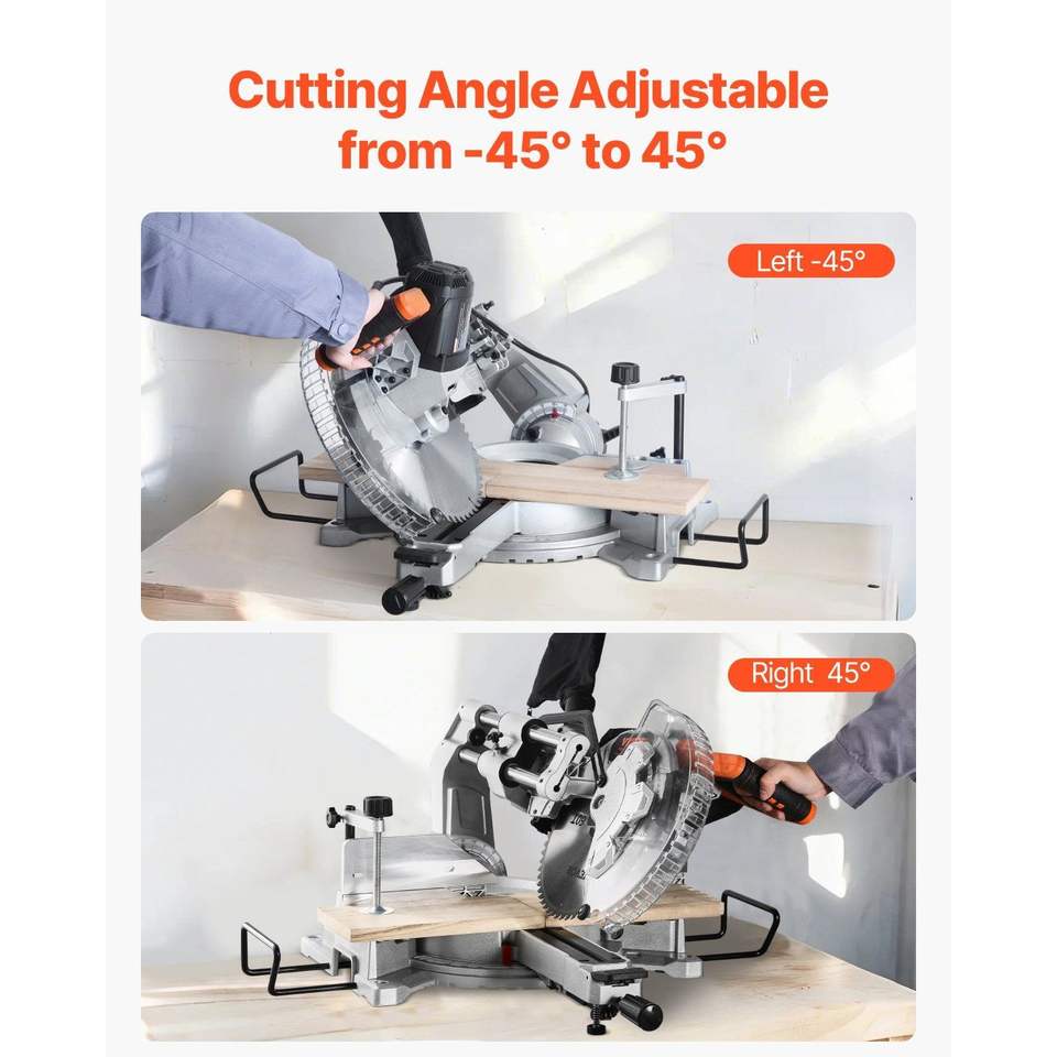 12-Inch Blade Corded Double Bevel 60-Tooth Compound Miter Saw 15 Amp Motor Wood Saw Machine with Sliding Feature
