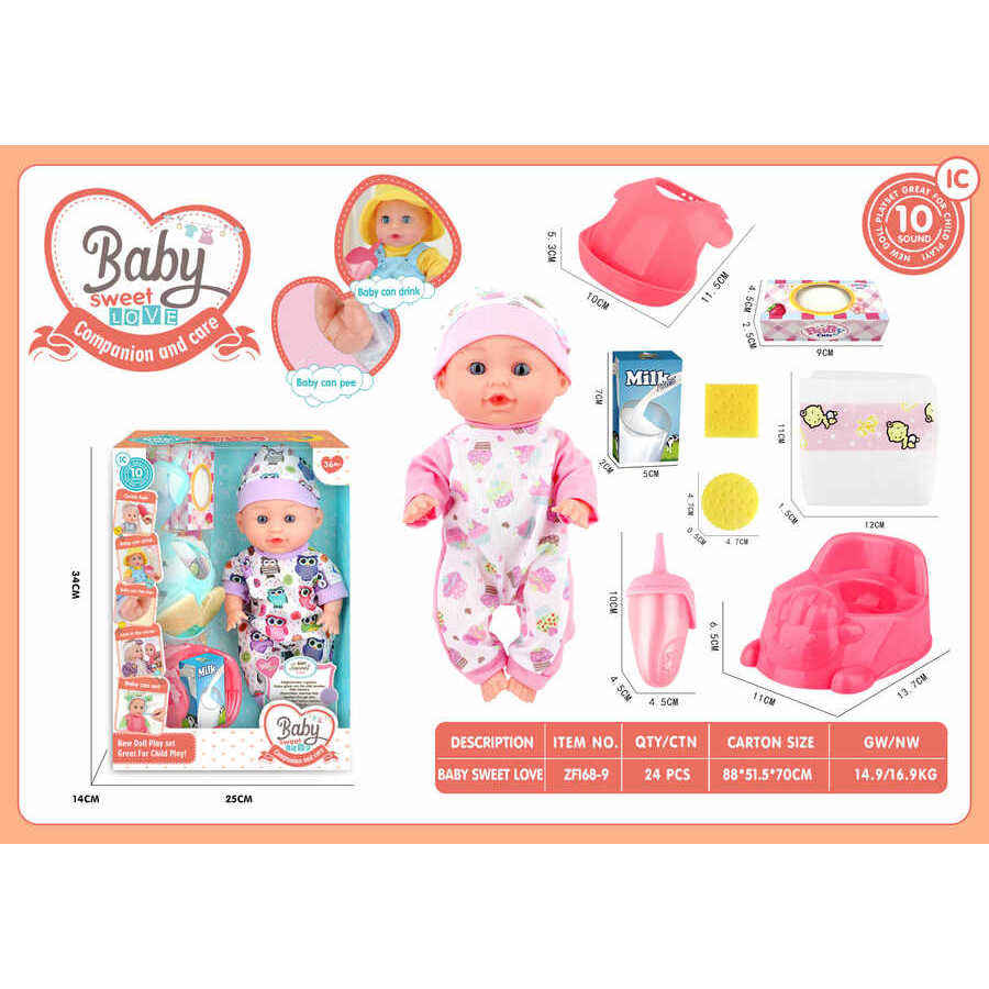 12-Inch Fixed Eye Soft Doll 10 Sound IC Pack Fashionable Model Toy for Girls Featuring Sheep Toilet Bib Cardboard 30 cm Size